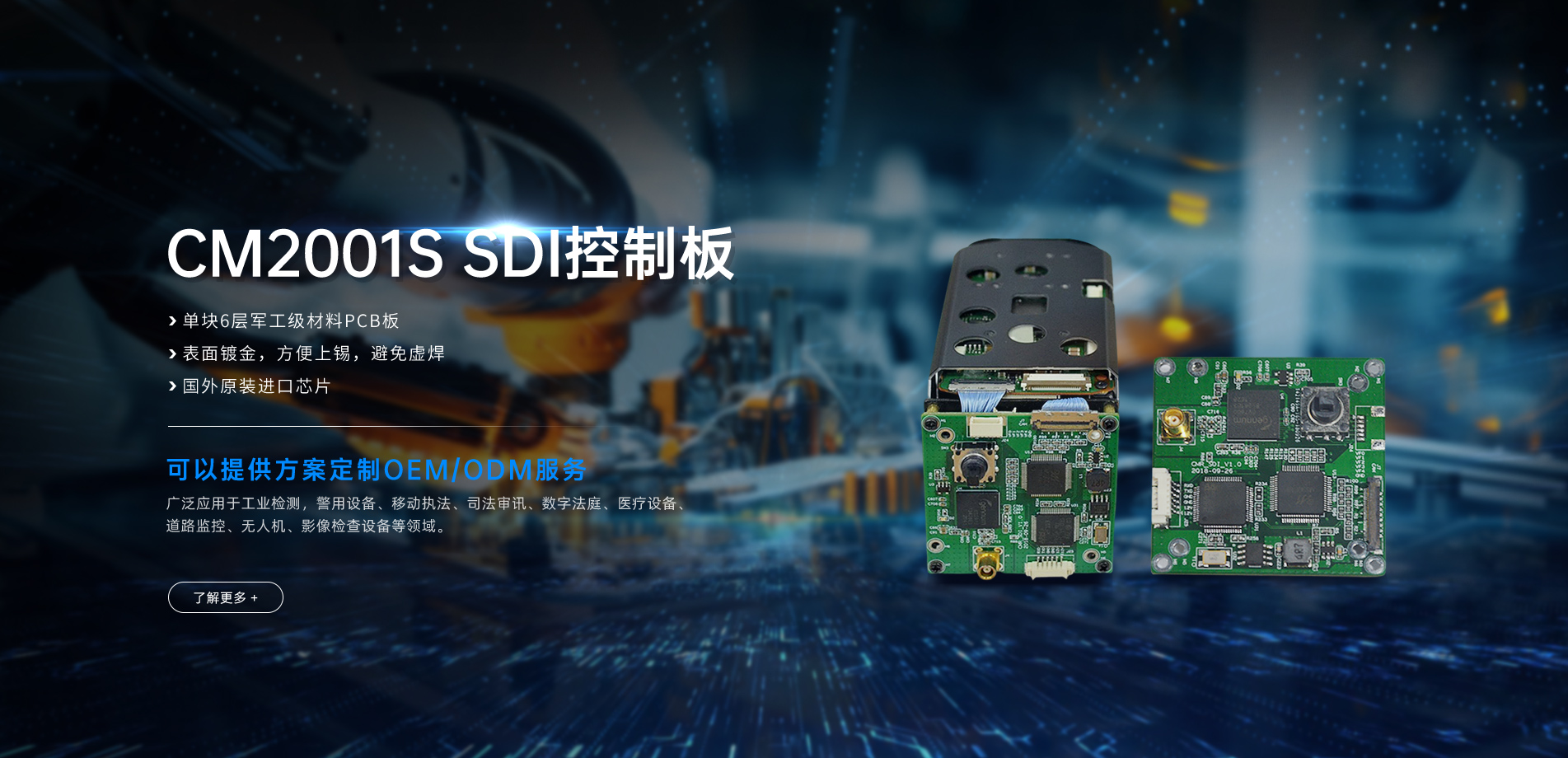應(yīng)用于手術(shù)直播攝像機(jī)、無人機(jī)航拍、工業(yè)檢測視頻設(shè)備、機(jī)器人攝像頭、監(jiān)控視頻、視頻會議、教學(xué)錄播、審訊系統(tǒng)及其他特殊行業(yè)。